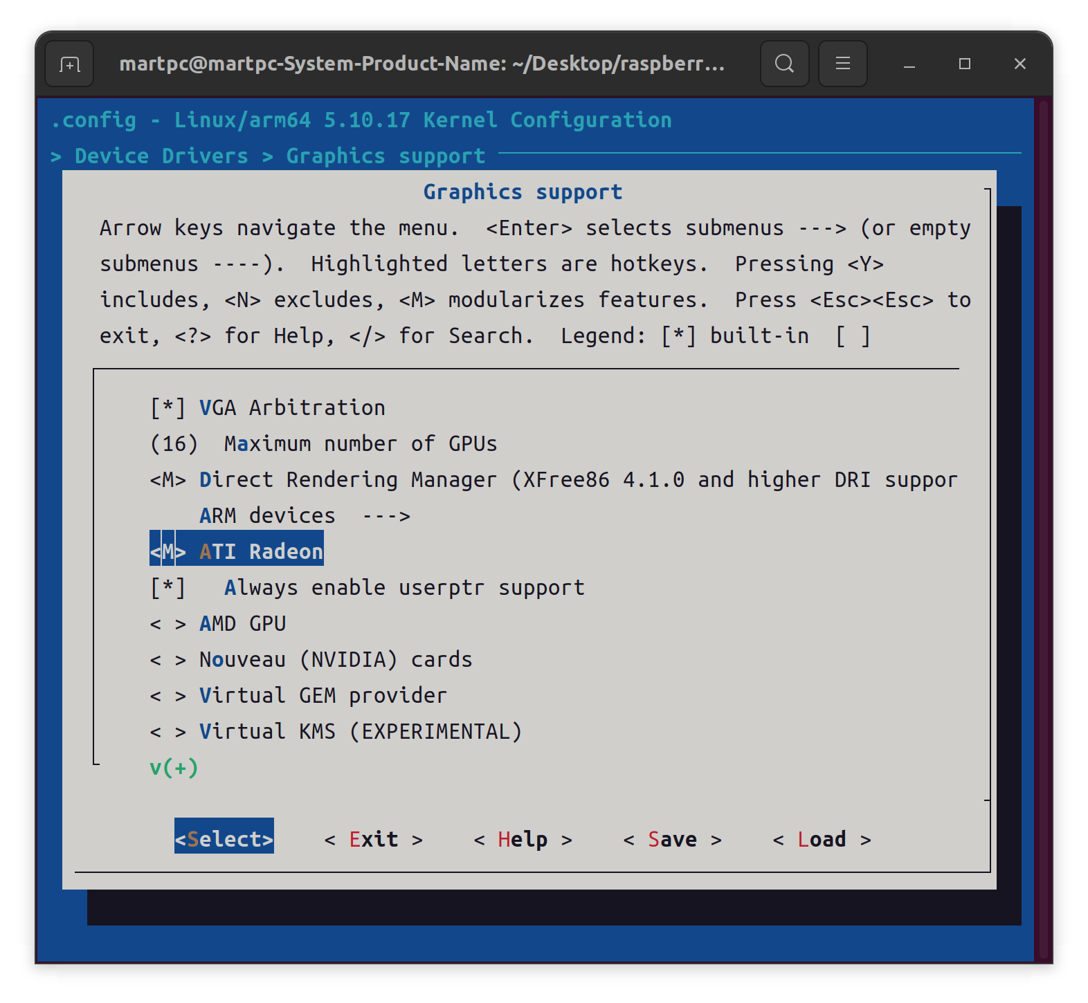 Device Drivers > Graphics support > ATI Radeon > Press M > Save > Exit