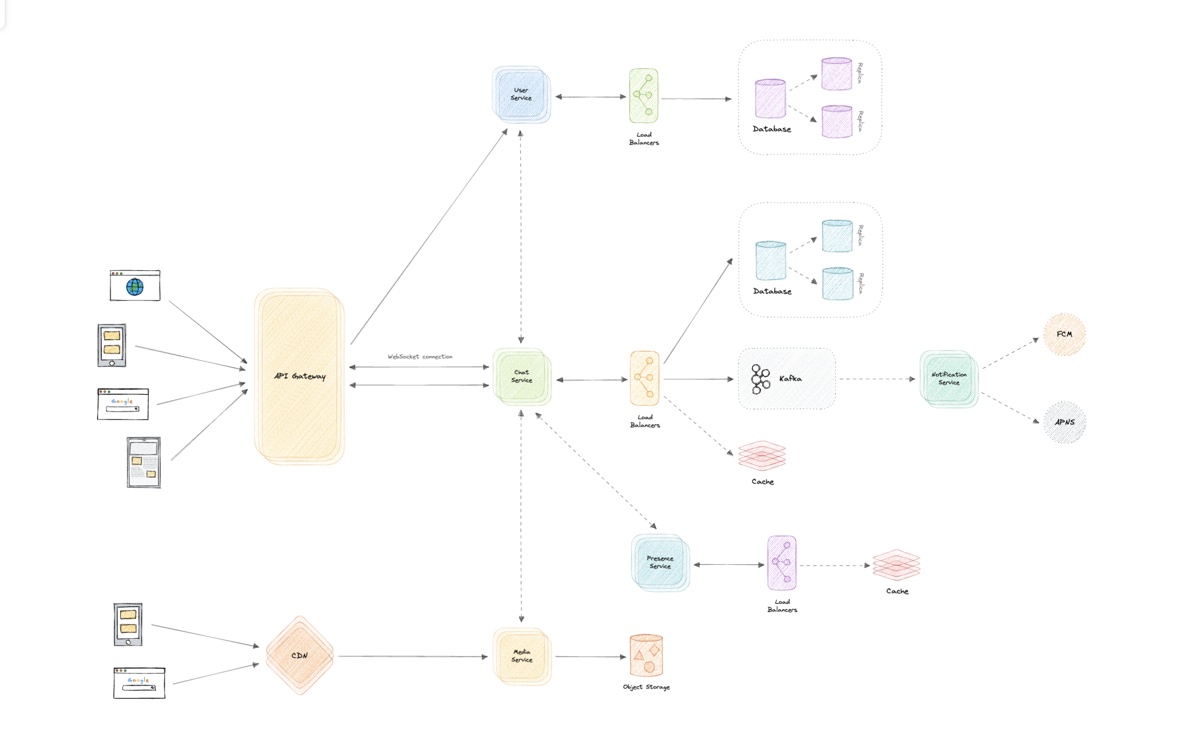 Push notifications will be an integral part of our platform. We can use a message queue or a message broker such as Apache Kafka with the notification service to dispatch requests to Firebase Cloud Messaging (FCM) or Apple Push Notification Service (APNS) which will handle the delivery of the push notifications to user devices.