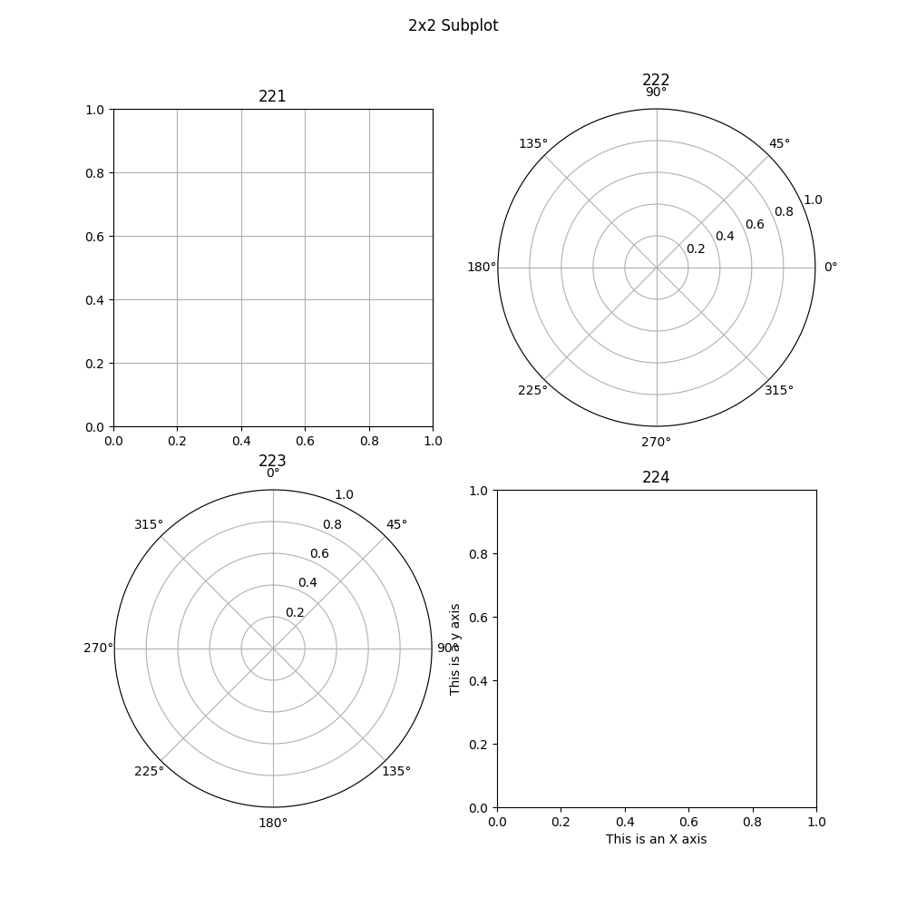 The number, N, of a grid of axes starts in the upper left (1), and goes right then down. The second axis of a 2x2 grid is the upper right axis.