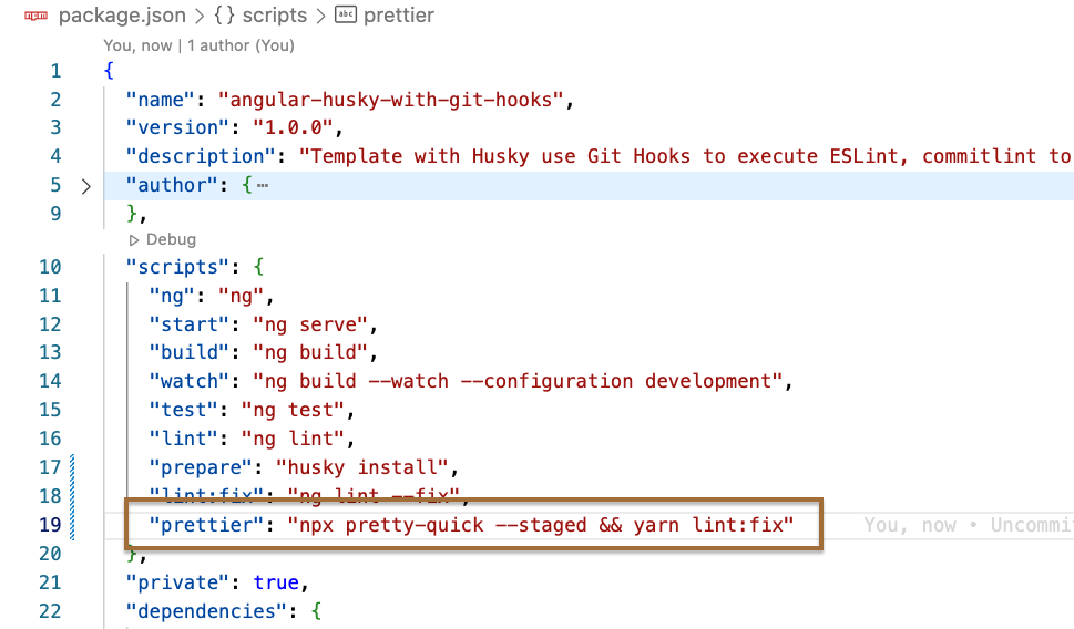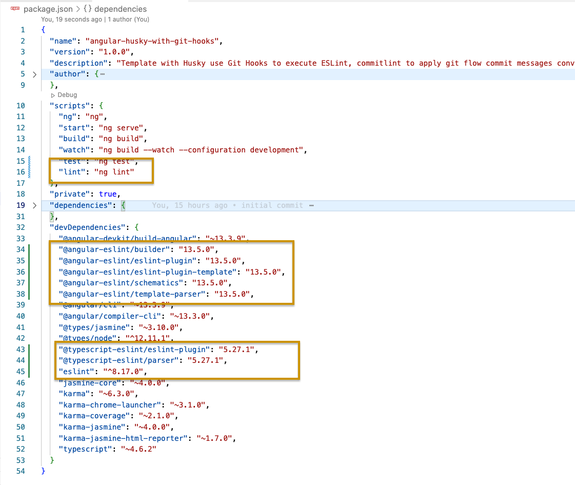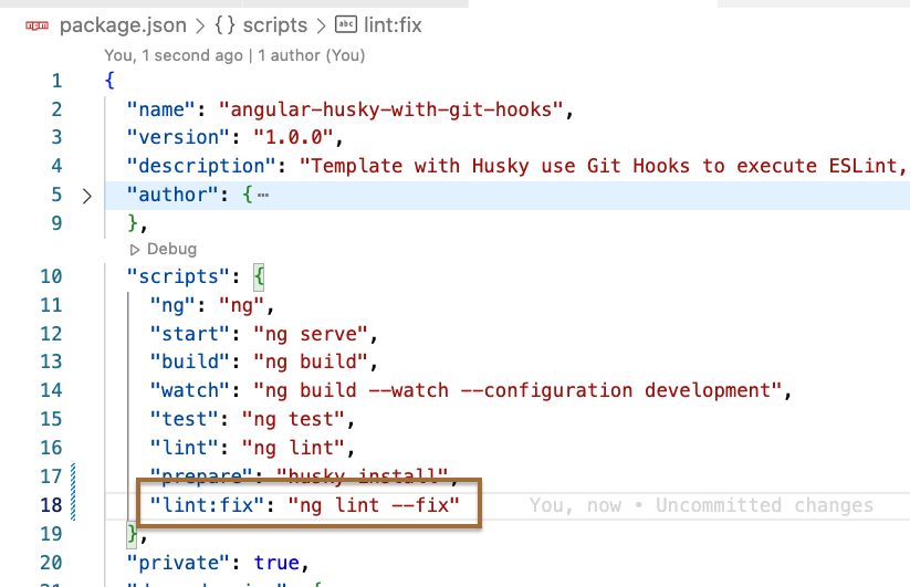 ng lintLos cambios se reflejan en el package.json de esta manera: