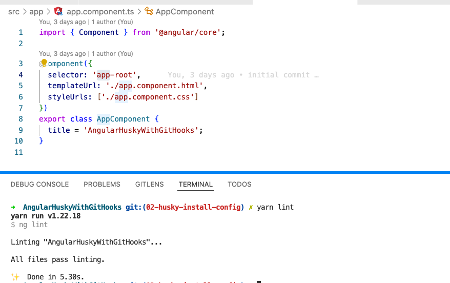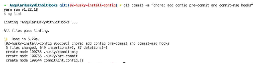 Ya tenemos definida la acción para ejecutar automáticamente yarn lint mediante hooks, con el hook pre-commit.