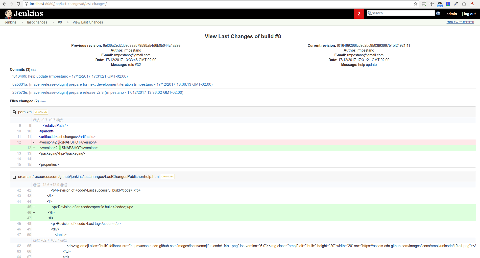 Hi, another option (as described on the SO question) is to use Last Changes plugin, following is a (scripted) pipeline example: