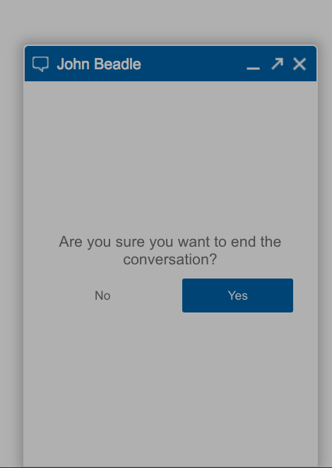 | confirmBtn.click(); // wait 2 seconds and then auto click they "are your sure?" confirm button to end the conversation. | |