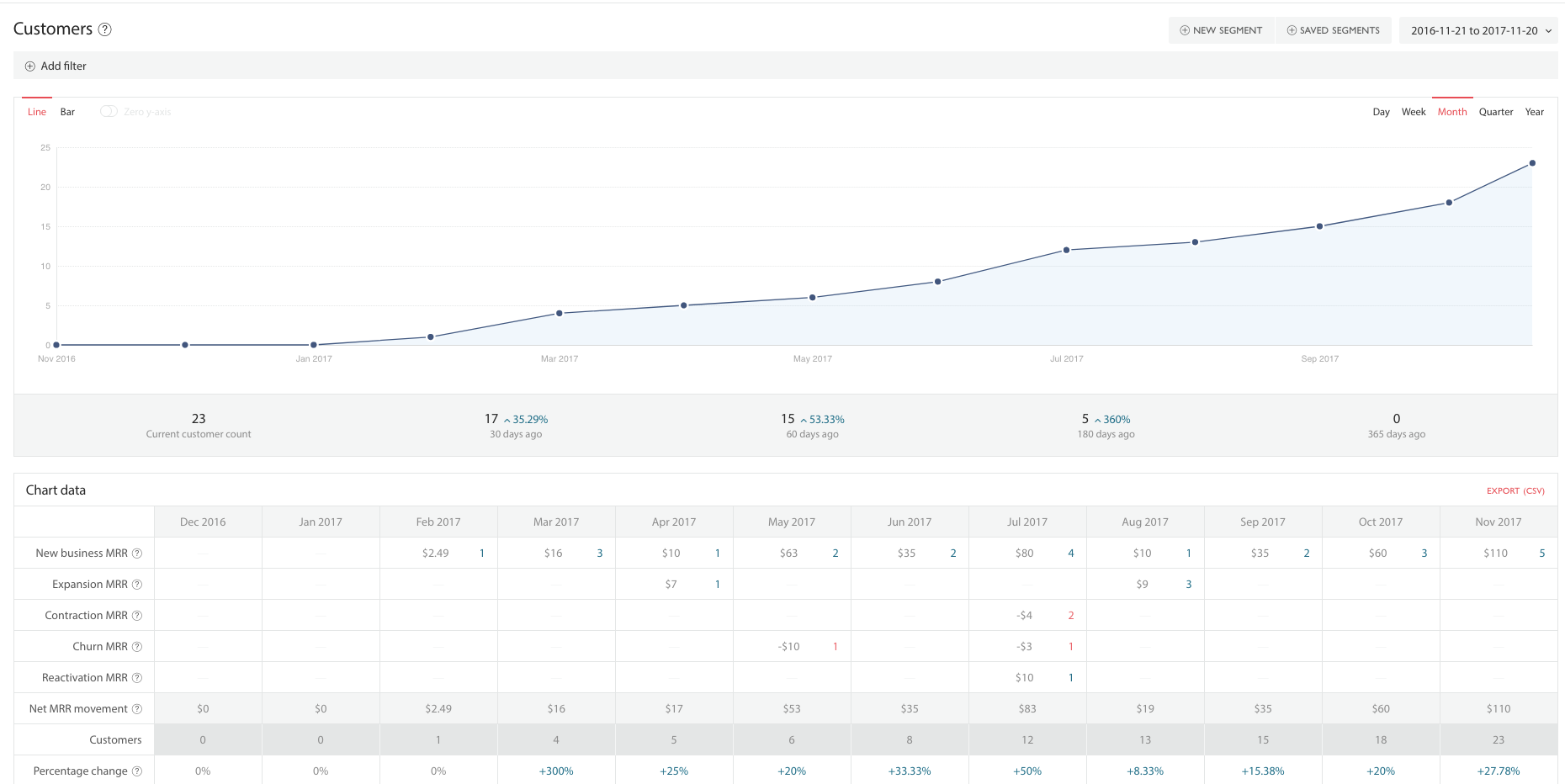 - if applicable, at least 4-5 data points of monthly traffic/customer numbers, so I can add an interactive graph