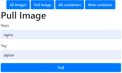 Now you can try creating a Nginx container. Pull a Nginx image (I suggest using alpine tag), then in the container creation form, select the image and enter the following host configuration: {PortBindings: {"80/tcp": [ {HostIp: "0.0.0.0", HostPort: "80"} ]}} - this will link container port 80 to port 80 on the host.
