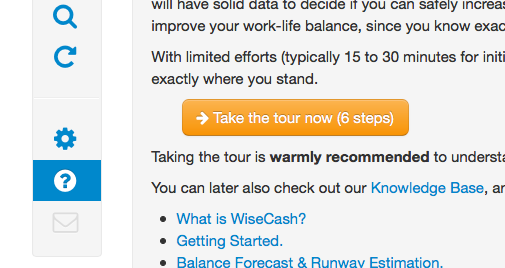 The "tour" button redirects to a regular page but with a specific "tour=1" parameter (https://www.wisecashhq.com/insights/burn-chart?tour=1 when logged in)
